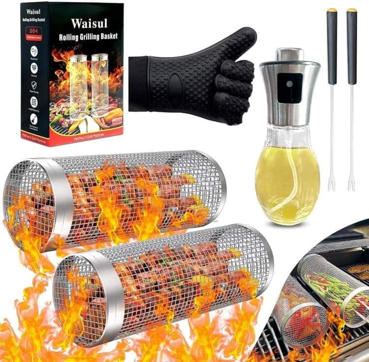 This Rolling Grilling Basket bundle is 50% off at checkout! Comes with everything you see pictured.