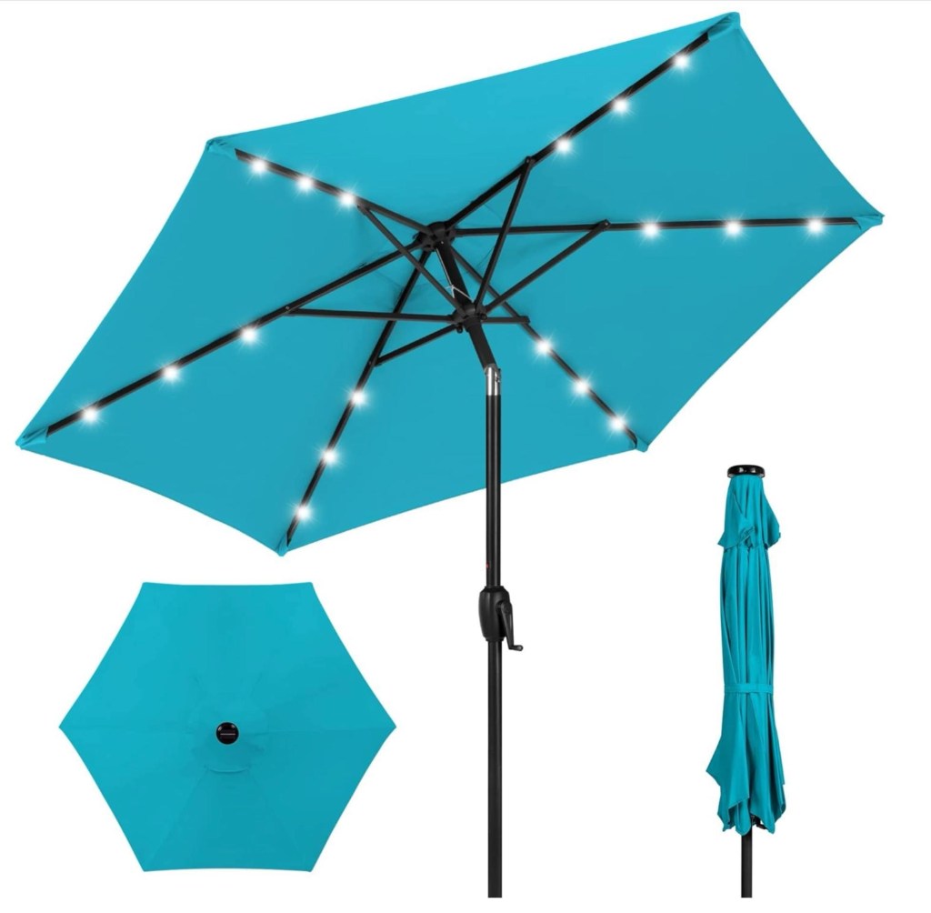 Solar Patio Umbrellas – These are 7.5′ and feature Push Button Tilt, Crank Lift, top-mounted solar panels, and 18 LED lights – drop to just for just $59.49 shipped when you use 15UJRY9Y at checkout! Lots of colors! #ad