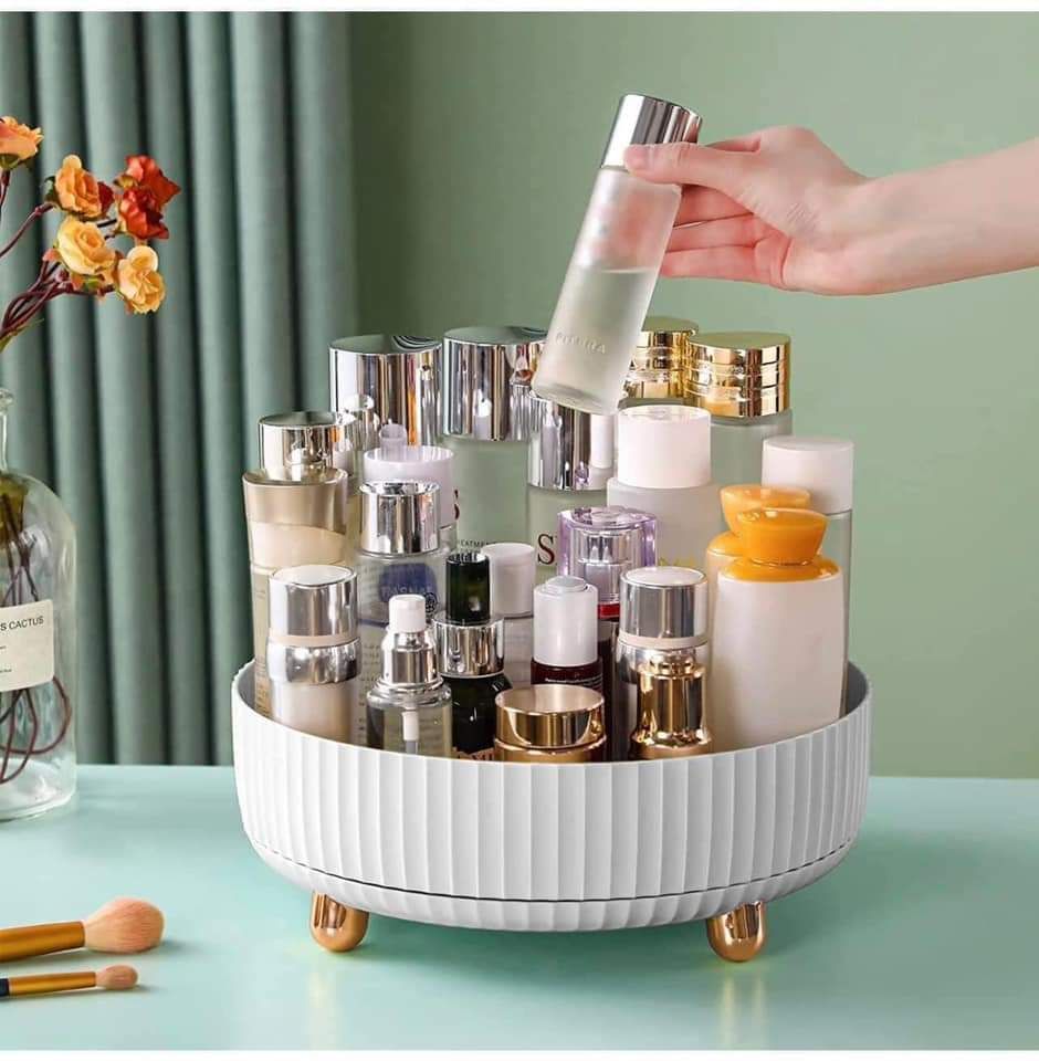 Woah!! Great price with that coupon available! This 360 degree lazy Susan makeup organizer is down to $12 for prime members! Note: the white is this larger size shown but the “white gold” is smaller.