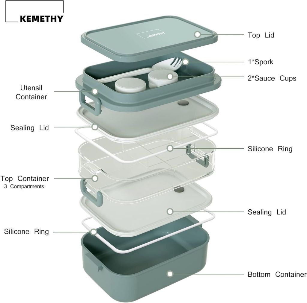 50% 0ff!! KEMETHY Bento Box Adult For Lunch, Stackable Large Capacity Containers with Tableware and Sauce Cups is on deàl at checkout #ad