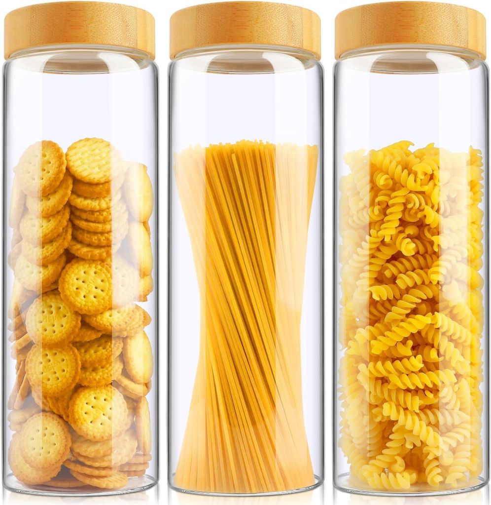 50% 0ff!! AISIPRIN Glass Storage Containers with Lids, Glass Jars with Airtight Lid for Cookie, Pasta, Rice, Cereal, Flour and much more is on deàl at checkout #ad