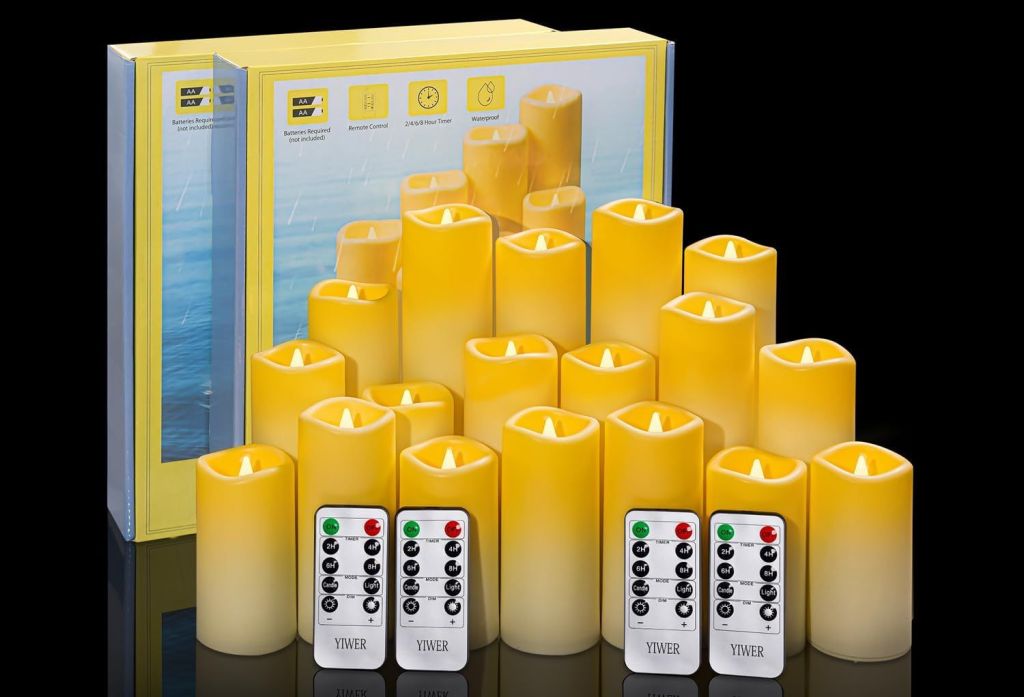 YIWER Plastic Waterproof Flameless Candles Set of 18: Battery Operated Candles Ivory Flickering Pillar Candles is on deal at checkout #ad