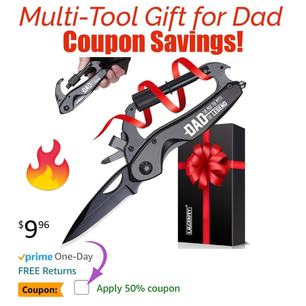 πππ Dadβs Day Gift Alert! This cool multi-tool is just for Dad with an awesome Qpon savings! Handy clip-on all-in-one set with knife, screwdrivers, bottle opener and more!