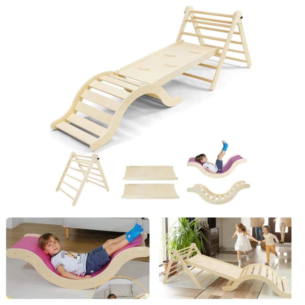 Beech Pikler Triangle Set Climber 5 in 1, Toddler Climbing Toys Indoor Folding with 41in Ramp & 43in Arch & Mat for Montessori Play Gym is on pr!ce dr0p + clip qpon at checkout #ad