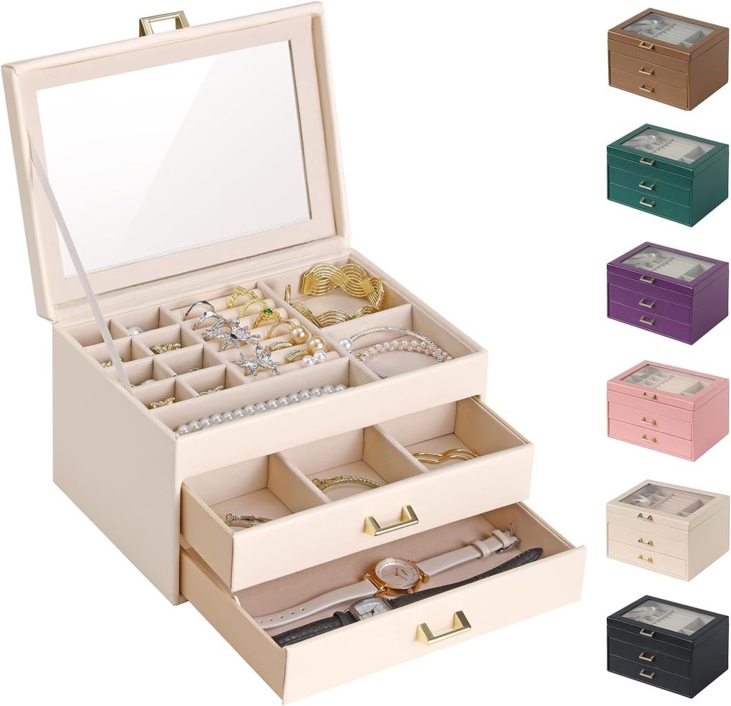 55% 0ff!! BALEINE Jewelry Box with Glass Lid, PU Jewelry Holder Organizer for Big Small Jewelry, Is already on deàl+ clip qpon at the product page #ad