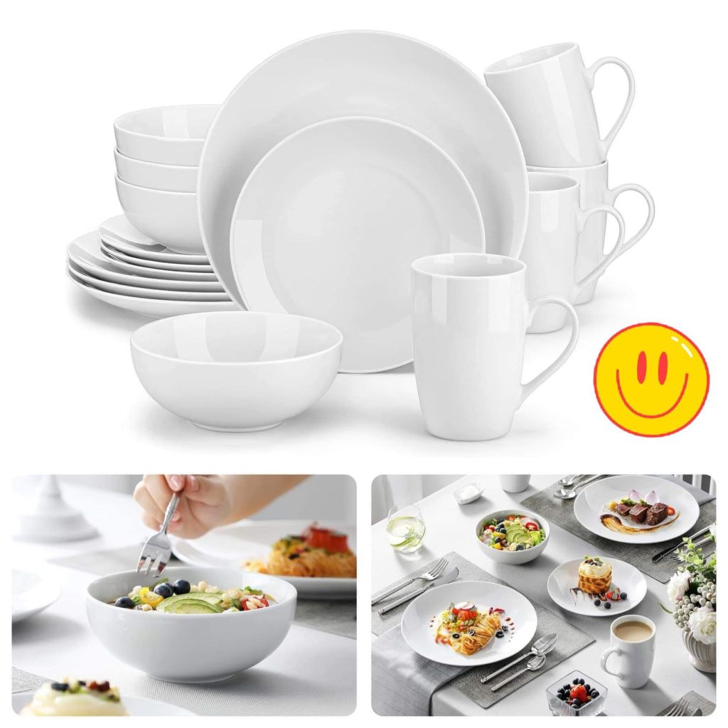 π π π If you need new dinnerware, check out this fantastic promo! Classic white porcelain in a 16-piece set of service for FOUR! The clean modern design is perfect for any style home. An awesome idea for someone just starting out, or to mix and match with your existing tableware.