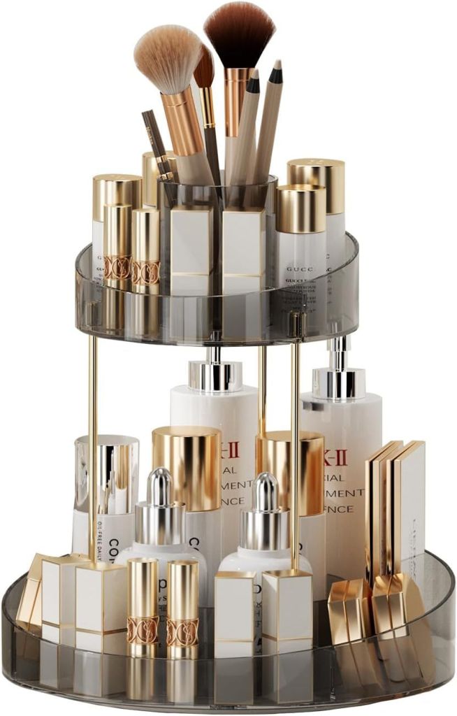 50% 0ff!! 360° Rotating Makeup Organizer, 2 Tier Large Capacity Skincare and Makeup Organizers is on deàl clip qpon at checkout #ad