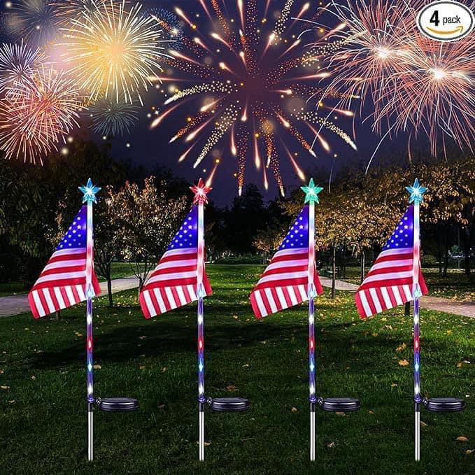 πΊπΈ These solar flag lights are so cool for a patriotic decor for the 4th! Grab a 4 pack 50% off with code XXBYTZNT at checkout. #ad
