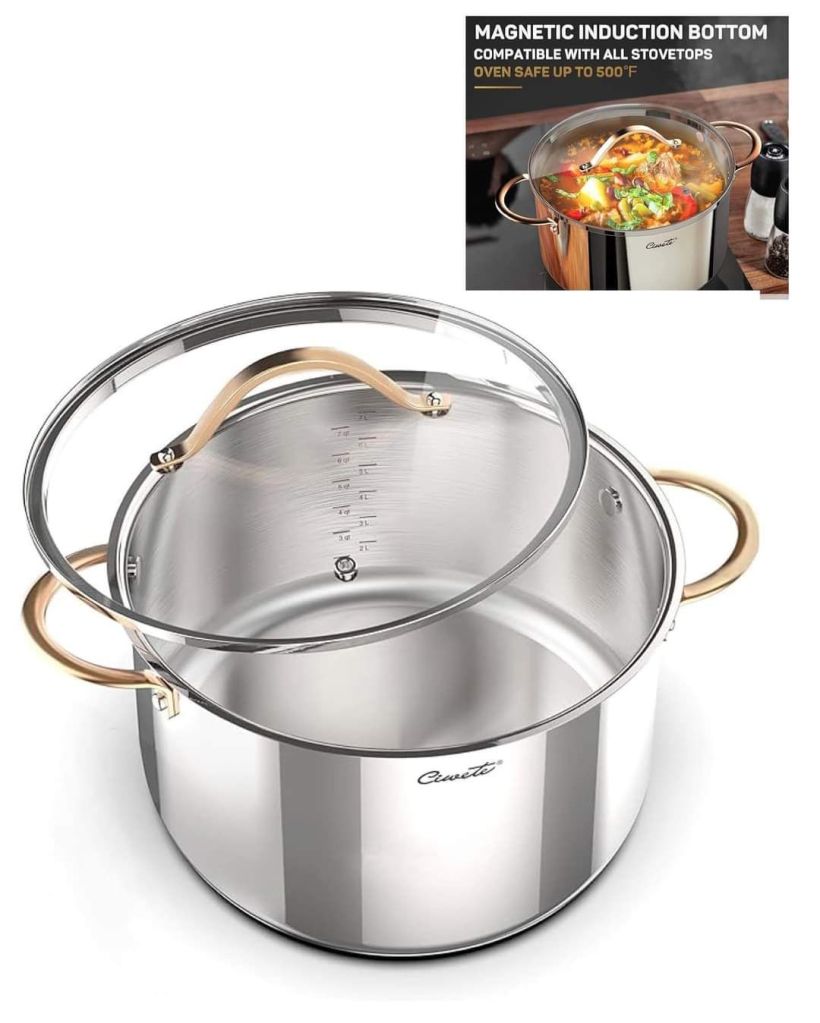 40% 0ff!! 8 Quart Stock Pot with Glass Lid, 18/10 Stainless Steel Stock Pot, Soup Pot is on deàl clip qpon+ use qode 5TR46HTP at checkout #ad