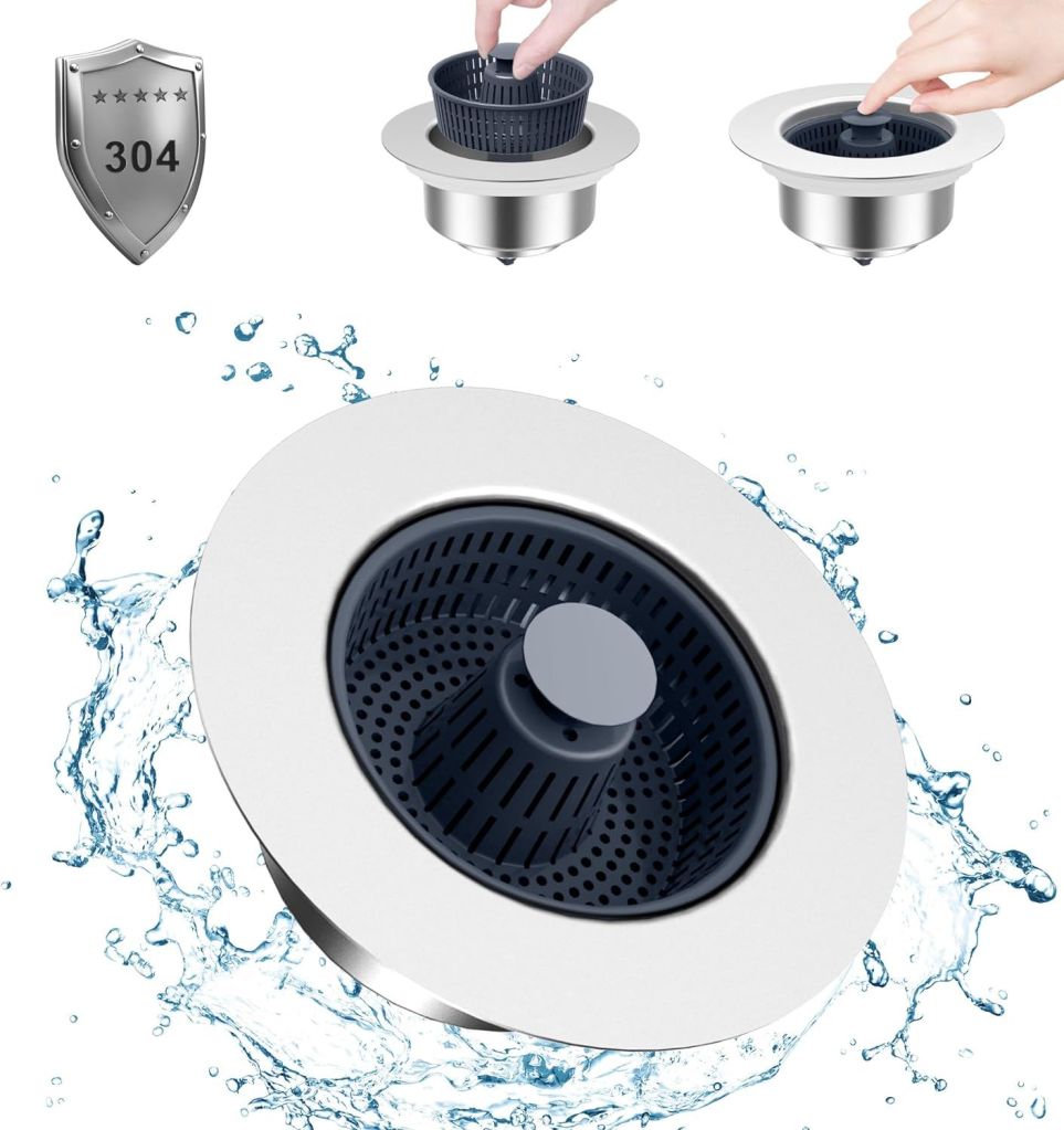 50% 0ff!! Kitchen Sink Drain Strainer Stopper: 3 in 1 Pop-Up Sink Stopper with Strainer Basket, is already on deàl+ clip qpon at checkout #ad