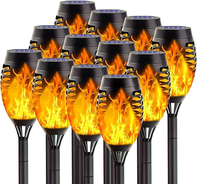 50% 0ff!! 12 Pack Solar Lights Outdoor, Solar Torch Lights with Flickering Flame for Garden Decor is on deàl at checkout #ad