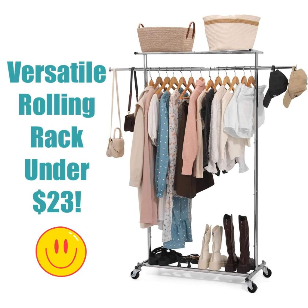 🏠🏠🏠 This handy rolling rack from HOUSE AGAIN has a fabulous price today! Great for attic or garage storage, vendor markets, or garage sales! I’ve even used mine inside a walk-in closet, and in an apartment that had no bedroom closet! Grab this option for just $22.39.