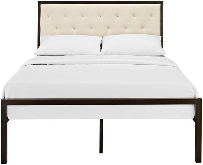 72% 0ff!! Modway Mia Upholstered Brown Beige Tufted Platform Bed with Metal Slat Support is on pr!ce dr0p at checkout #ad