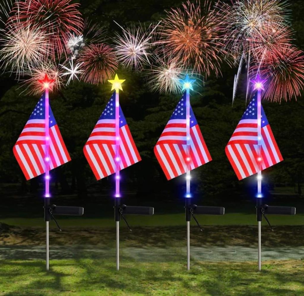 π±π±π± The solar flag lights are back! You get four in the pack and save 50% when you enter 2SIVGOCV at checkout. And, it works on multiples so you can score more than one pack if you need them!