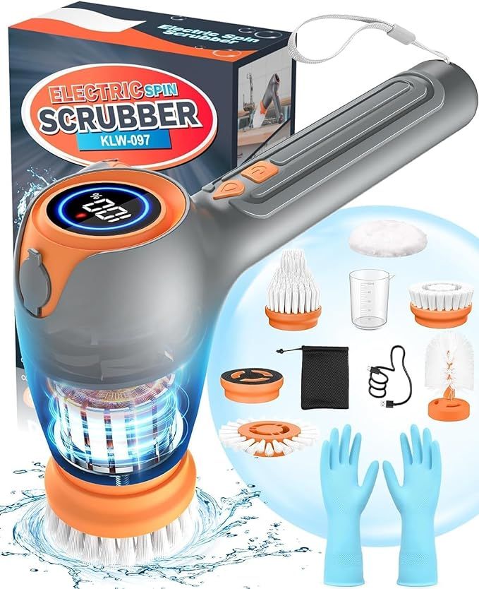 50% 0ff!! Electric Spin Scrubber, 3200mAh Rechargeable Cordless Shower Scrubber with 5 Replaceable Brush Heads is on deàl use qode 9PL8M7QE at checkout #ad