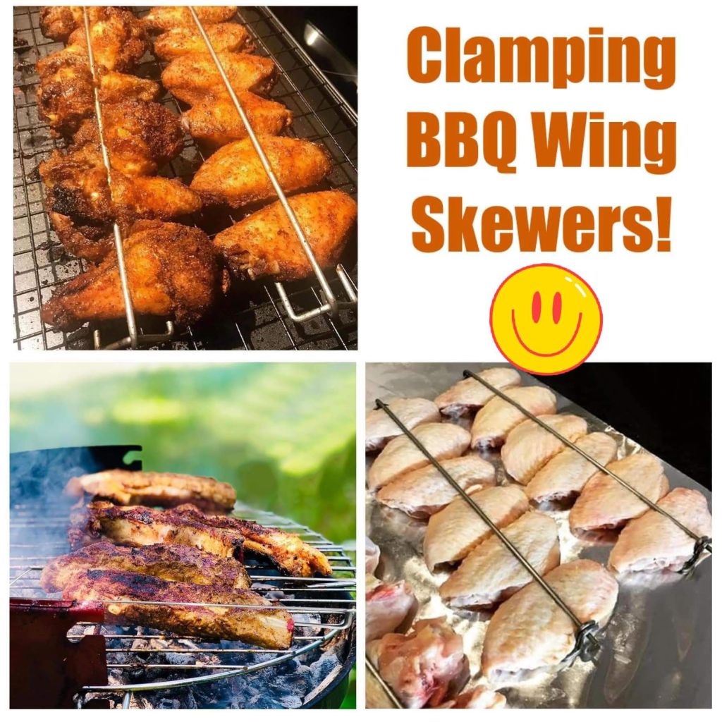🔥🔥🔥 Well file this one under “things I never knew existed but now I NEED!” These clamping barbecue skewers are an amazing idea! Makes it so much easier to turn wings, fish veggies and more. Cook evenly and use the sliding rod to remove the food mess-free! Save on a pack of FOUR or SIX! A fun Father’s Day gift for the grilling Dad.