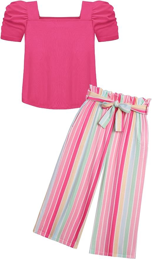 30% 0ff!! Arshiner Girls 2 Pieces Outfits Kids Square Neck Puff Sleeve Tops and Pants Set with Pockets is on deàl at checkout #ad