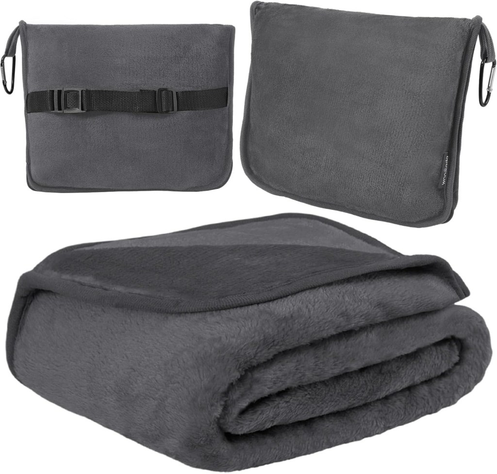 This travel blanket/pillow is small enough to clip onto a backpack, go in a carry on bag, or fit over your carry on handle! Use NX5AGF8Y to snag one for 50% off! #ad