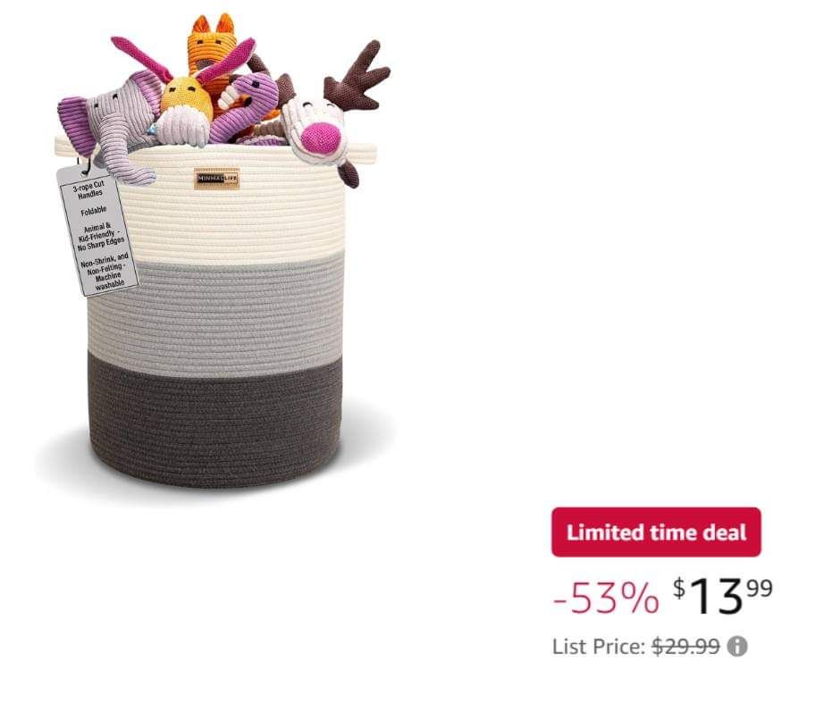 Only 14 suppimiraJune 30, 2024Deals Post navigation PreviousNext This Cotton Rope Basket would be fabulous to store toys, stuffed animals, blankets and more! I love the size of this one! Snag it for 13.99 (reg 29.99).Ad SHOP DEAL Share this: Share on X (Opens in new window) X Share on Facebook (Opens in new window) Facebook Like Loading...