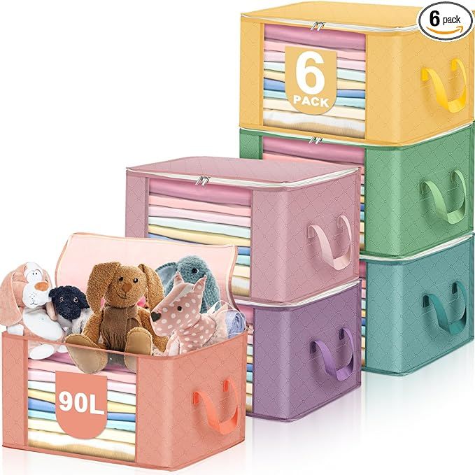 50% 0ff!! 6 Pack 90L Extra Large Storage Bag Pastel Multicolored Foldable Storage Bins with Zipper is on deàl at checkout #ad
