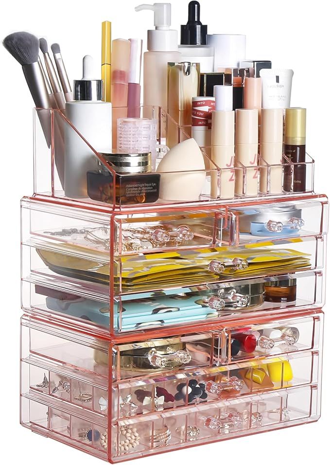 40% 0ff!! Clear Cosmetic Makeup Organizer With 8 different drawers and Removable of Top Holders is on deàl at checkout #ad
