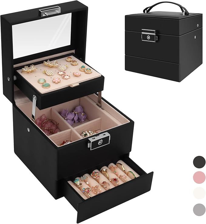 50% 0ff!! DesignSter Jewelry Box-3 Layers Small Travel Jewelry Organizer is on deàl use qode TYDO93LA at checkout #ad