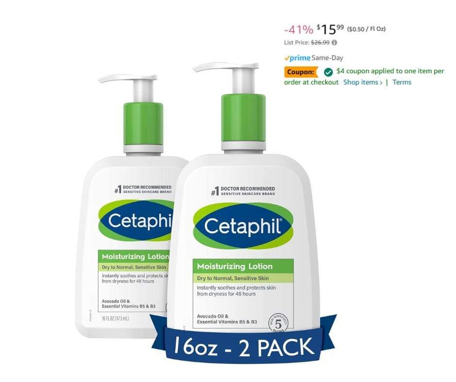 I buy this Cetaphil sensitive skin lotion regularly, but I have never seen it drop this low! A 2 pack is 41 perc. off, then cl!p the coup0n and s@ve an additional 4 bucks! That drops the total pr!ce to 11.99 at check0ut for both bottles! (reg. 26.99)