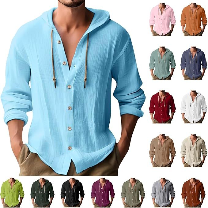 50% 0ff!! Mens Long Sleeve Linen Shirts Drawstring Hooded Sweatshirt Casual is on deàl use qode PWDR45KV at checkout #ad