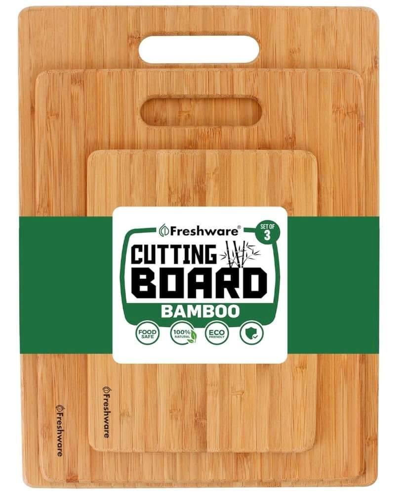 💥 💥 💥 Limited Time Deal! Bamboo Cutting Boards for Kitchen Set of 3 Wood Cutting Board for Chopping Meat, Vegetables, Fruits, Cheese, Knife Friendly Serving Tray with Handles. BPA free so as to be completely safe to use on a daily basis. Save 52% get them for $9.65 👉 Ad