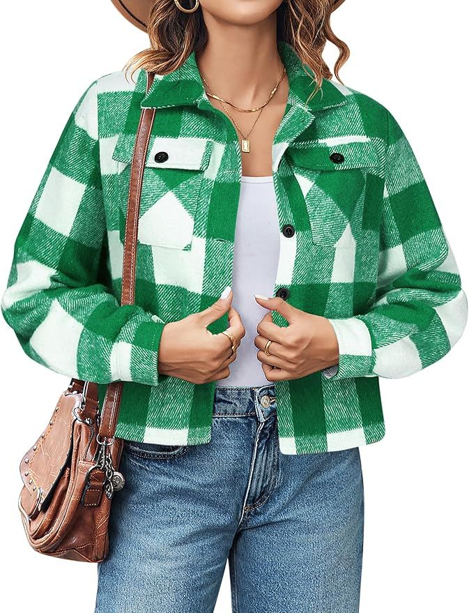 30% 0ff!! Zeagoo Flannel Shirts for Women Fashion Cropped Plaid Jacket Shacket Button Down is on deàl clip qpon at checkout #ad