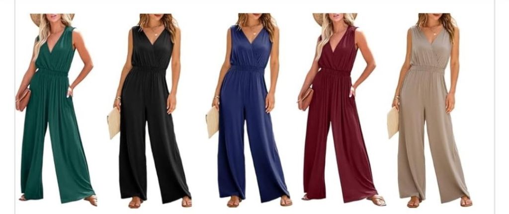 50% 0ff!! BLENCOT Women Casual Jumpsuits Sleeveless V Neck Pleated Wide Leg Overalls Fashion Summer Rompers are on deàl at checkout #ad