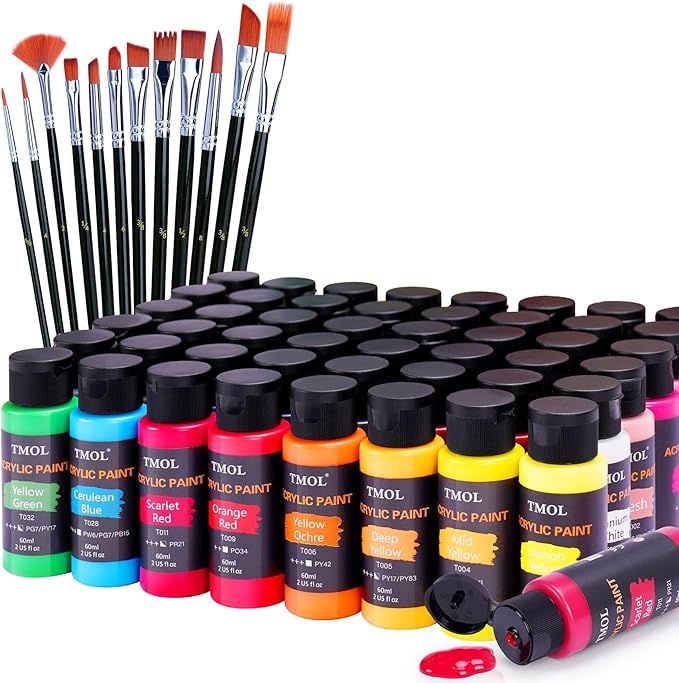 50% 0ff!! Acrylic Paint Set, 48 Colors (2 oz/Bottle) with 12 Art Brushes, Art Supplies for Painting Canvas, Wood, Ceramic & Fabric, Rich Pigments Lasting Quality is on deàl use qode BH55LEDK at checkout #ad