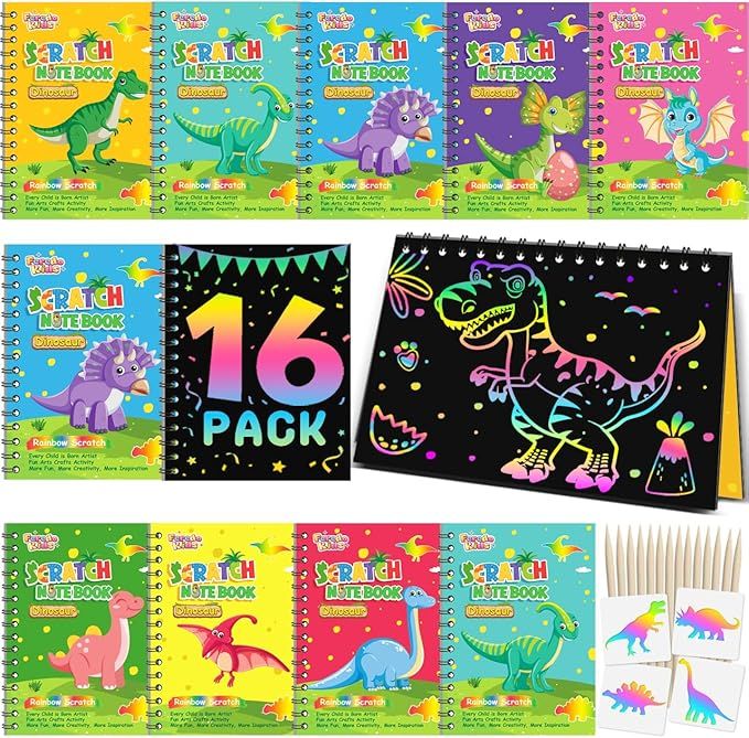 50% 0ff!! Dinosaur Toys Party Favors for Kids: 16 Pack Scratch Art Notebook Bulk Dinosaur Toys is on deàl at checkout #ad