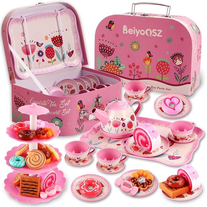 50% 0ff!! Tea Party Set for Little Girls, Princess Tea Time Toy with Food Sweet Treats Playset Carrying Case is on deàl + clip qpon at checkout #ad