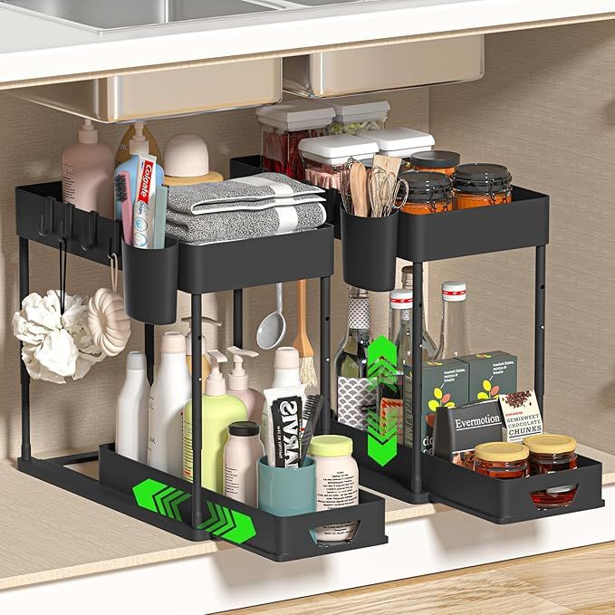 40% 0ff!! Under Sink Organizers and Storage 2 Pack, 2 Tier Adjustable Height Sliding Bathroom Organizer, is on deàl at checkout #ad