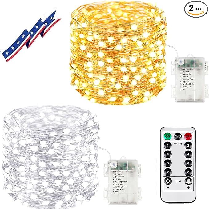 57% 0ff!! 2 Pack Warm White& Cool White Each 66Ft 200LED Battery Operated Fairy Lights with Remote, is on pr!ce dr0p + clip qpon at checkout #ad
