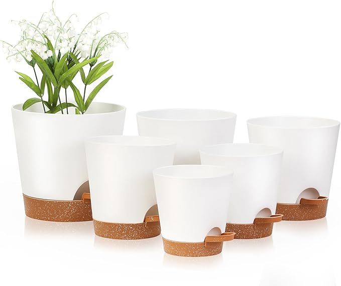50% 0ff!! JERIA Plant Pots 8/7/6.5/6/5.5/5 Inch Self Watering Planters with Drainage Hole, is on pr!ce dr0p at checkout #ad