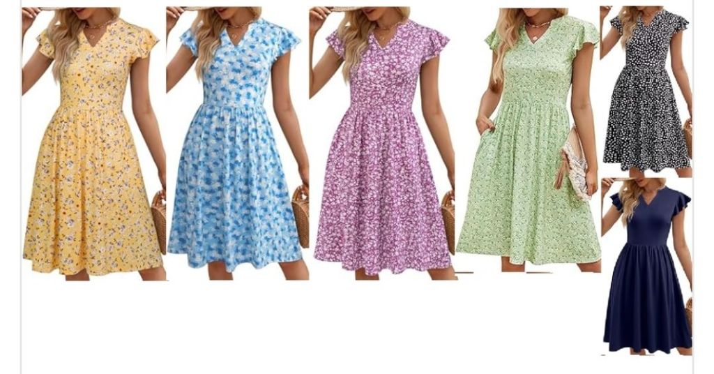 35% 0ff!! YATHON Casual Dresses for Women 2024 Cute Summer Floral Fit and Flare Cap Sleeve A Line Knee Length Dress is on deal at checkout #ad
