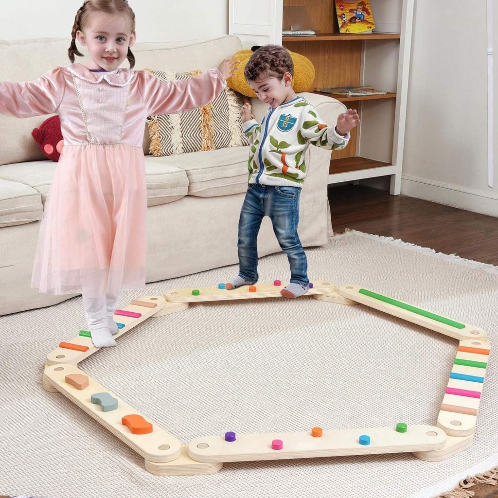 ☀️☀️☀️ Your Littles will love the ENITYA 6pcs Wooden Balance Beam!! Only $29.99!! Toddler obstacle course balance beam has a double-sided design, one side is smooth, and the other side has different color raised modules.