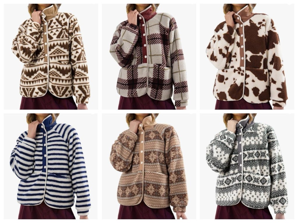 50% off these fun Fleece Jacket Casual Long Sleeve Sherpa Button Down Jackets for Women Printed Warm Coats With Pockets. Use clickable and 209F5469 at checkout! #ad