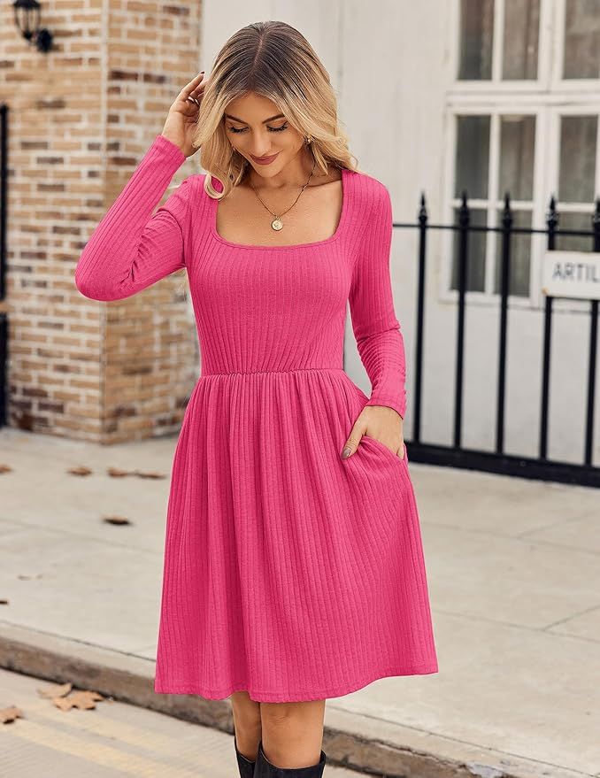 20% 0ff!! Zeagoo Womens Casual Sweater Dress Square Neck Knit Long Sleeve Dress is on deàl clip qpon at checkout #ad
