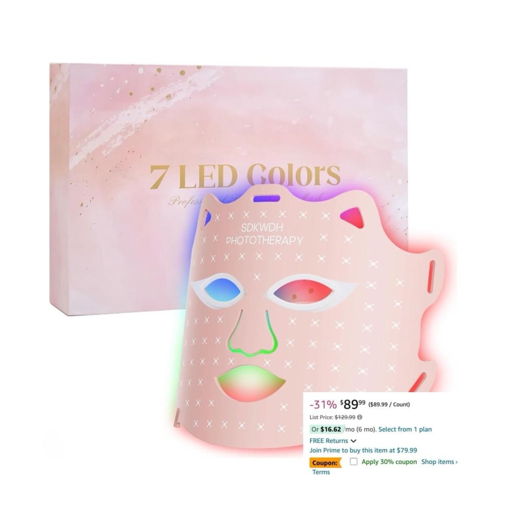 This 7 Colors LED Face Light Therapy Mask drops to $55.99 when you click the coupon–reg $129.99!!! Great reviews too! #ad