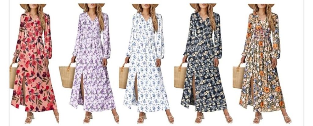 Deal!! BLENCOT Long Sleeve V Neck Floral Maxi Dress for Women Casual Flowy Slit Ruched High Waist Cocktail Fall Dresses is on deàl at checkout #ad