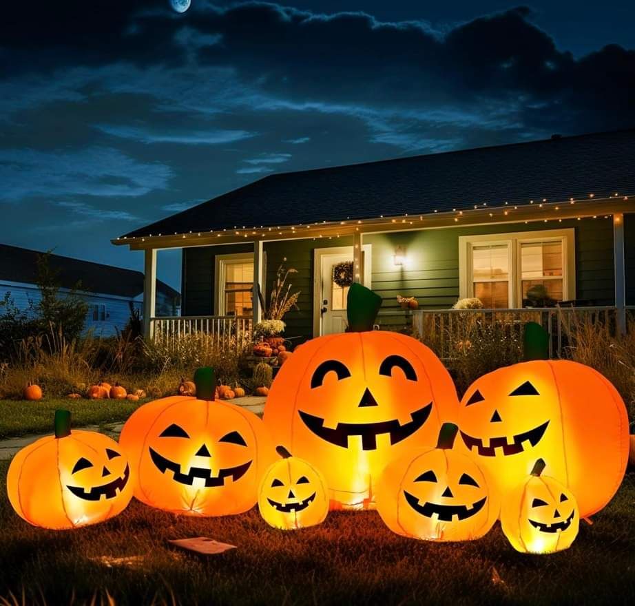 🎃 🎃 🎃 7.5FT Halloween Inflatables. Super bright LED lights built inside the blow up Halloween decorations, light up in the evening to attract neighbors and guests. Perfectly appeal to younger kids, and not too scary but still a fun lawn decoration. 👉 Ad