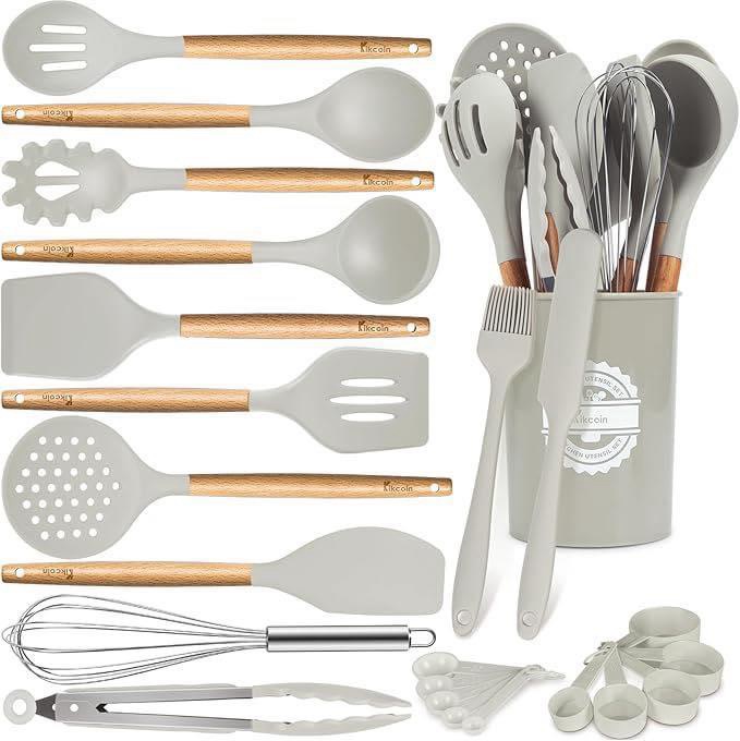 50% off Silicone Cooking Utensils Set, Kikcoin Wood Handle Kitchen Utensils Set with Holder!! 14.99 (Reg. 29.99) at checkout! #ad