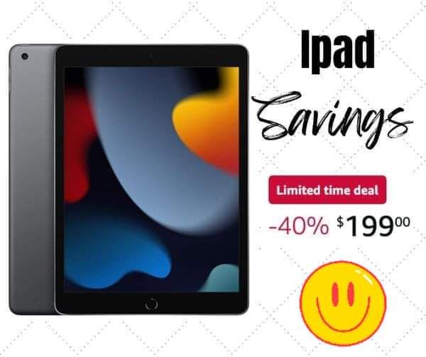 π₯π₯π₯ Limited time Deal. Apple iPad (9th Generation), Touch ID, All-Day Battery Life. All the essentials in the most affordable iPad, with a beautiful 10.2-inch Retina display, powerful A13 Bionic chip, and an Ultra Wide front camera with Center Stage. Work, play, create, learn, stay connected, and more. πAd