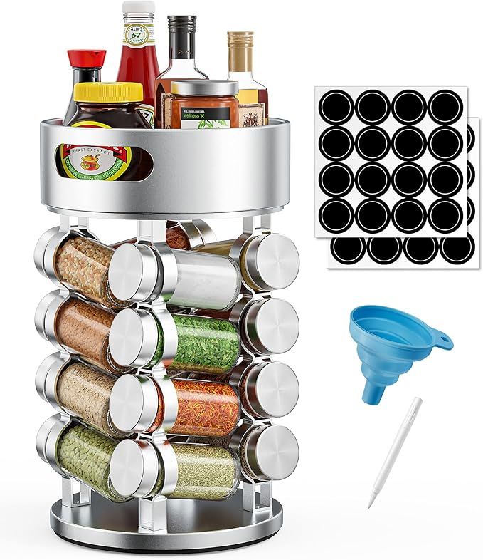 50% 0ff!! 2 Tier Rotating Spice Rack Set With 16 Jars and Extra Top Tray is already on deàl+ clip qpon at checkout #ad