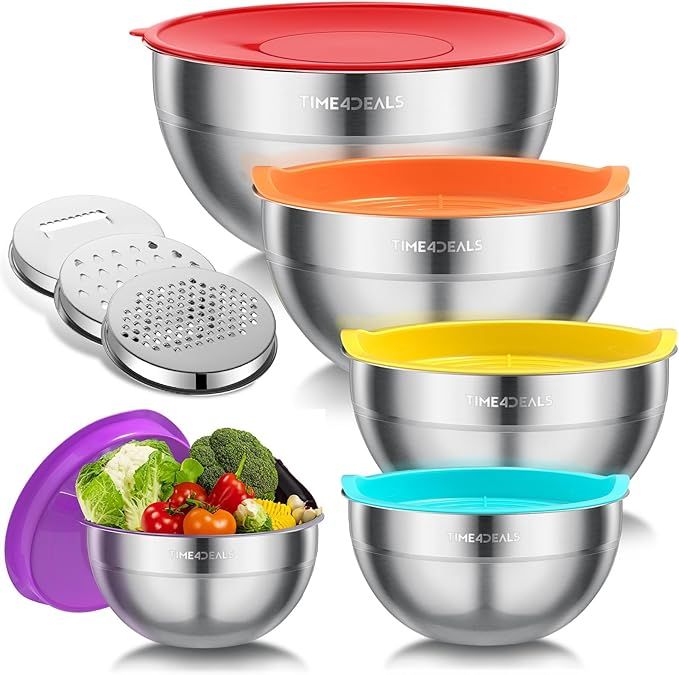 50% 0ff!! Mixing Bowls with Airtight Lids Set, 5 PCS Stainless Steel Nesting Bowls with 3 Grater Attachments is on deàl use qode L337WWRG at checkout #ad