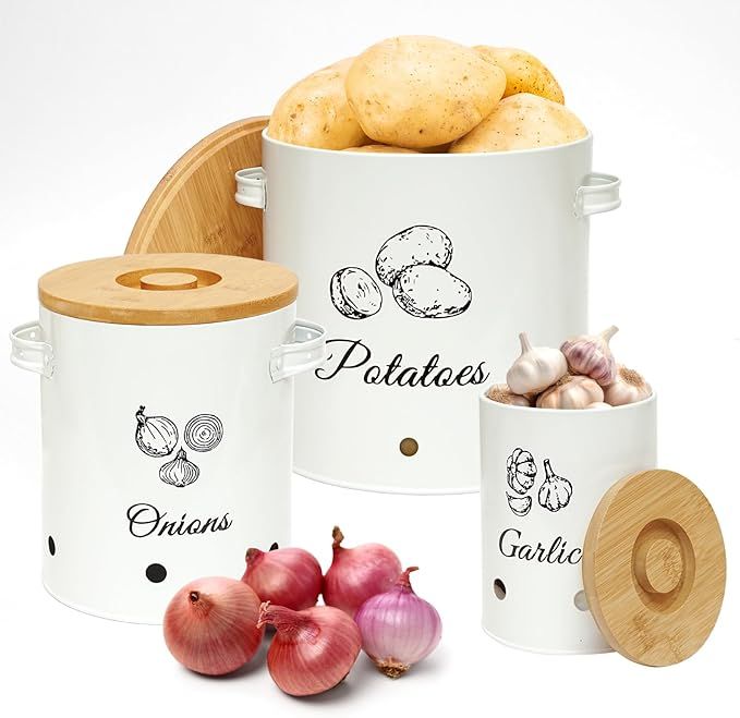 50% 0ff!! Potato Storage For Pantry, 3 Containers Kitchen Counter Organizer Countertop is on deàl at checkout #ad