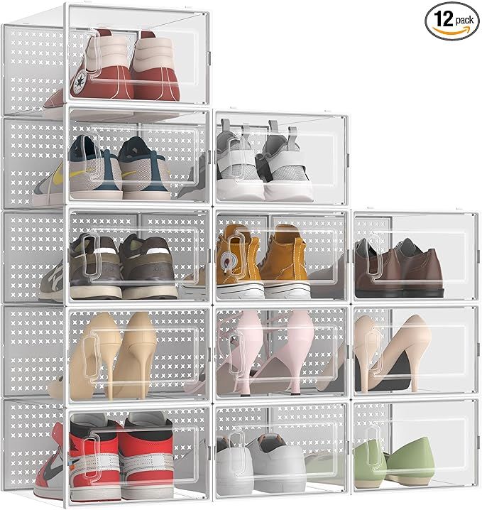 50% 0ff!! 12 Pack XX Large Clear Stackable Shoe Storage Boxes Organizer for Closet, Modular & Portable Plastic Shoe is on deàl at checkout #ad